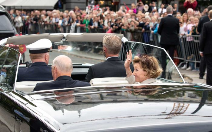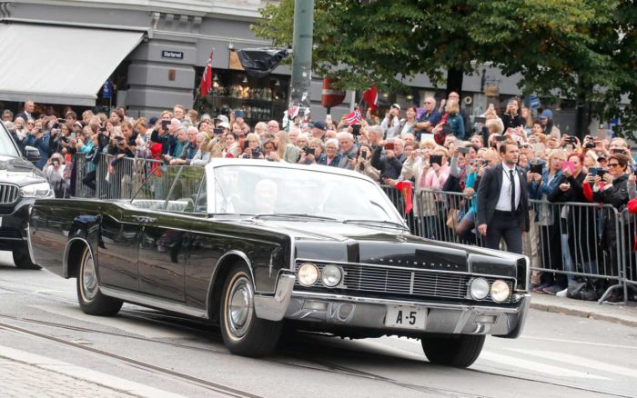 En tur i bröllopslimousinen hann Harald och Sonja också med, i samma Lincoln Continental som de åkte kortege i efter sitt bröllop den 30 augusti 1968. Den gled iväg längs Oslos paradgata Karl Johan på väg mot festgudstjänsten i Oslo Domkyrka.
